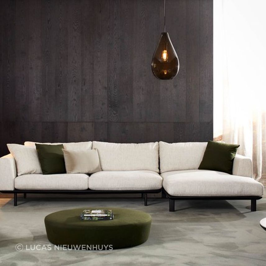 The lounge area was all about bringing in natural finishes to amplify comfort and cosiness. Our Avoca sofa in a warm leather sits by the Johanna in a flecked Belgian linen, atop a hemp & sisal rug, with an oak coffee table.