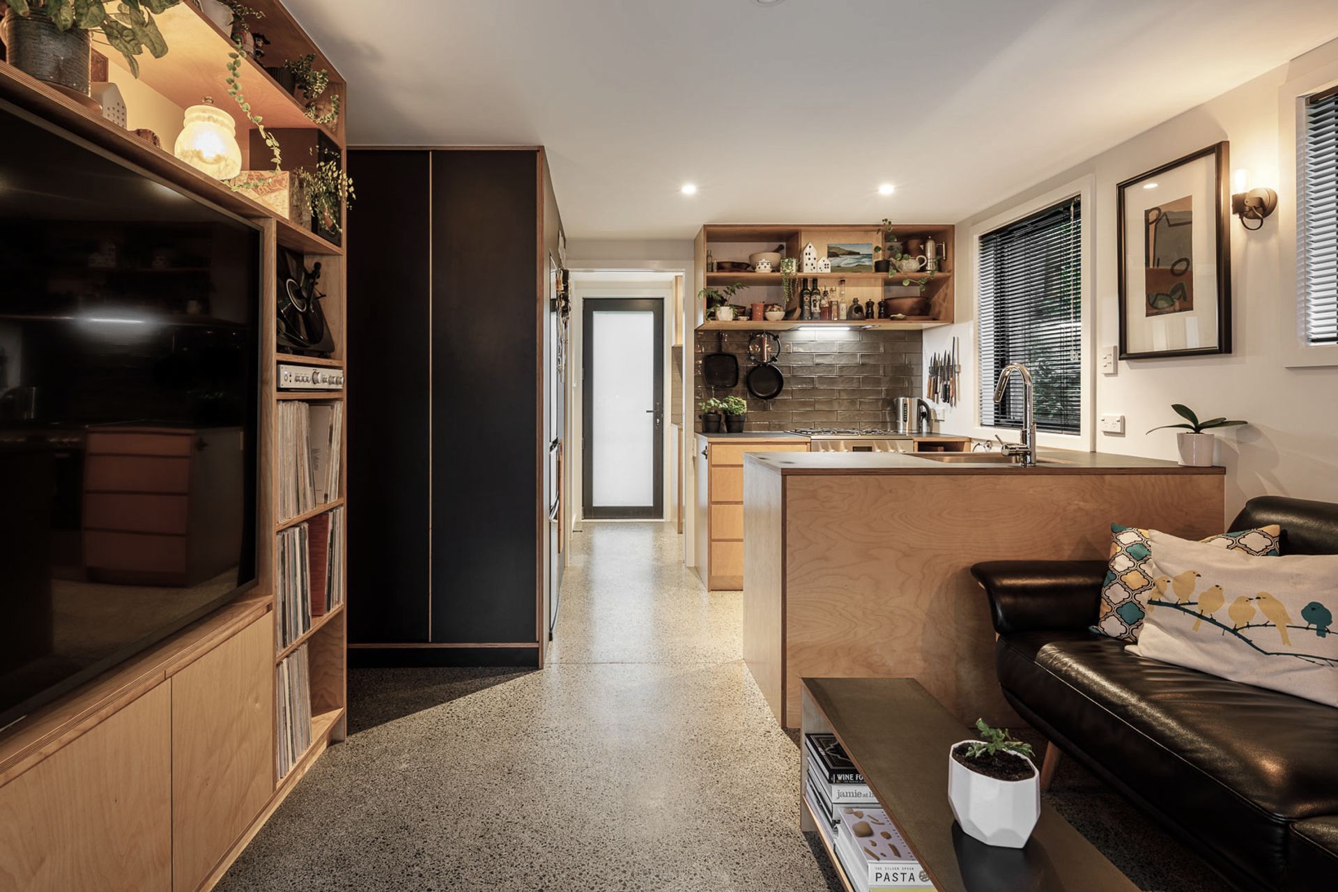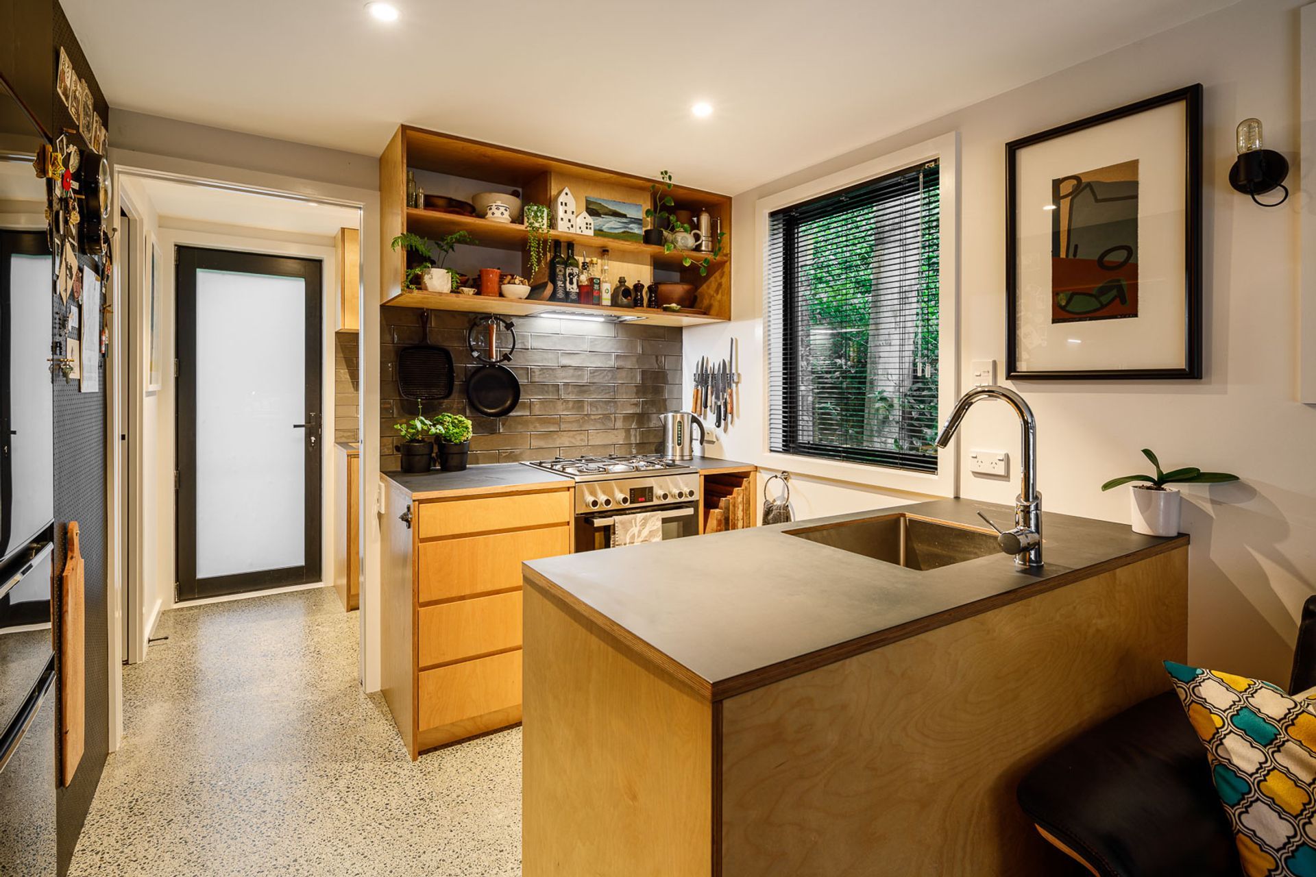 ArchiPro Project Summary - A beautifully designed 65 square metre infill dwelling located in Vogeltown, Wellington, showcasing modern architecture and thoughtful space utilization, photographed for Inline Design & Build.