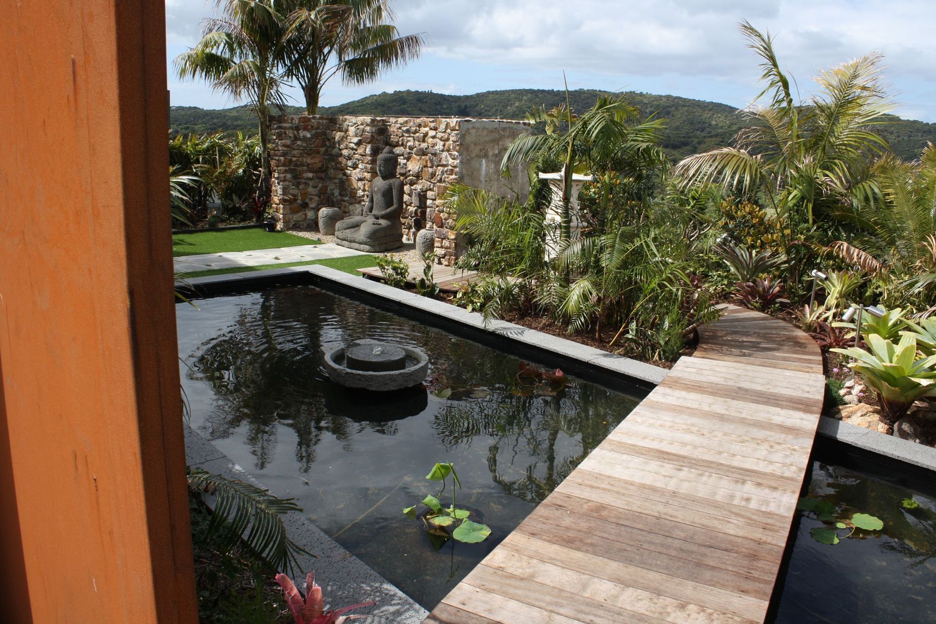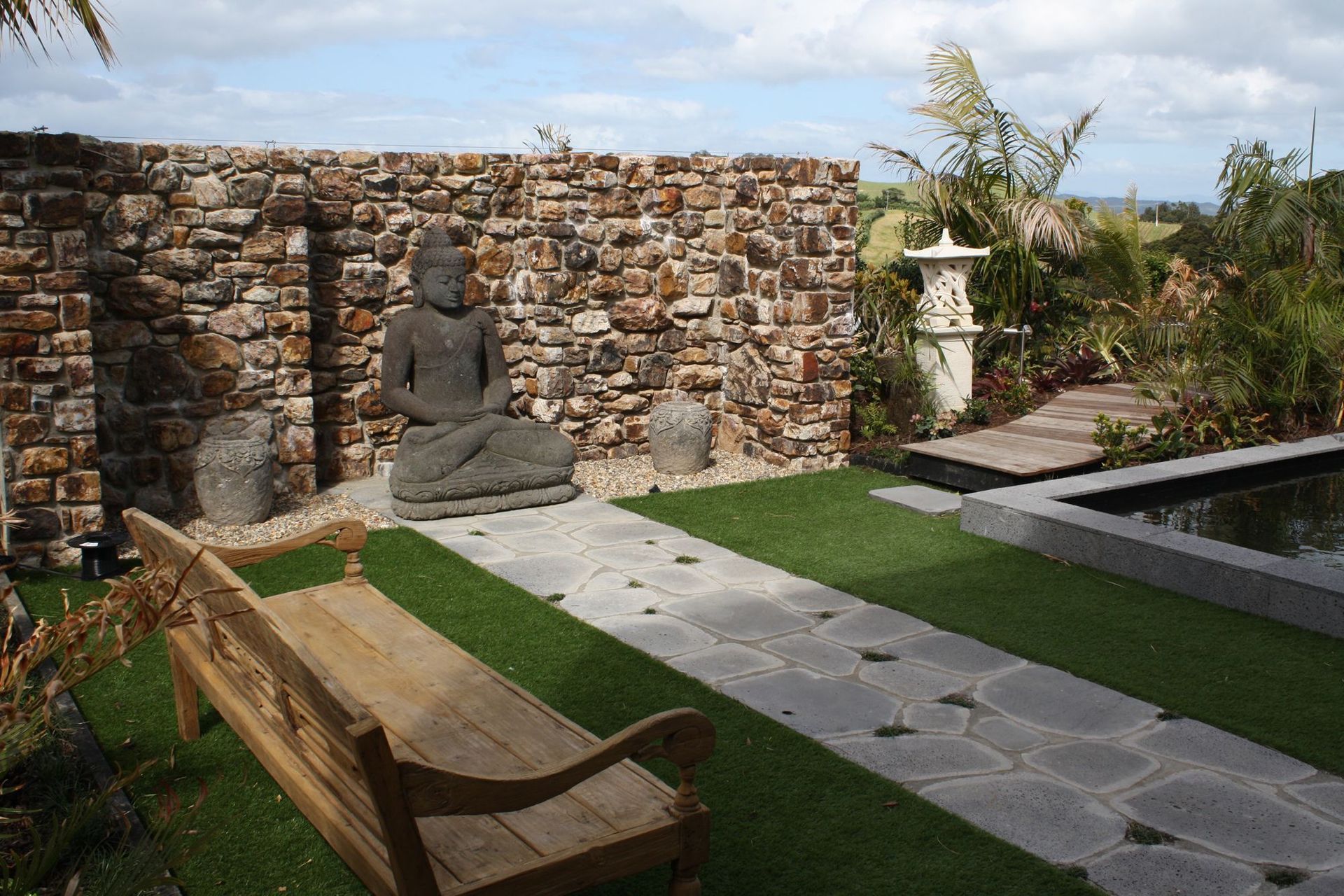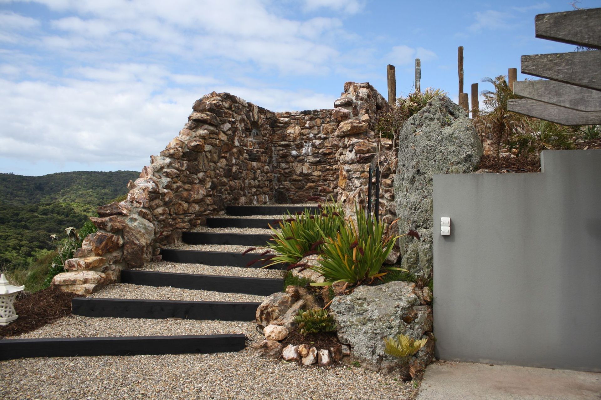 ArchiPro Project Summary - The Waiheke Island Bali Garden project blends natural beauty with architectural elegance, offering a tranquil retreat among ancient stone walls and ruins.