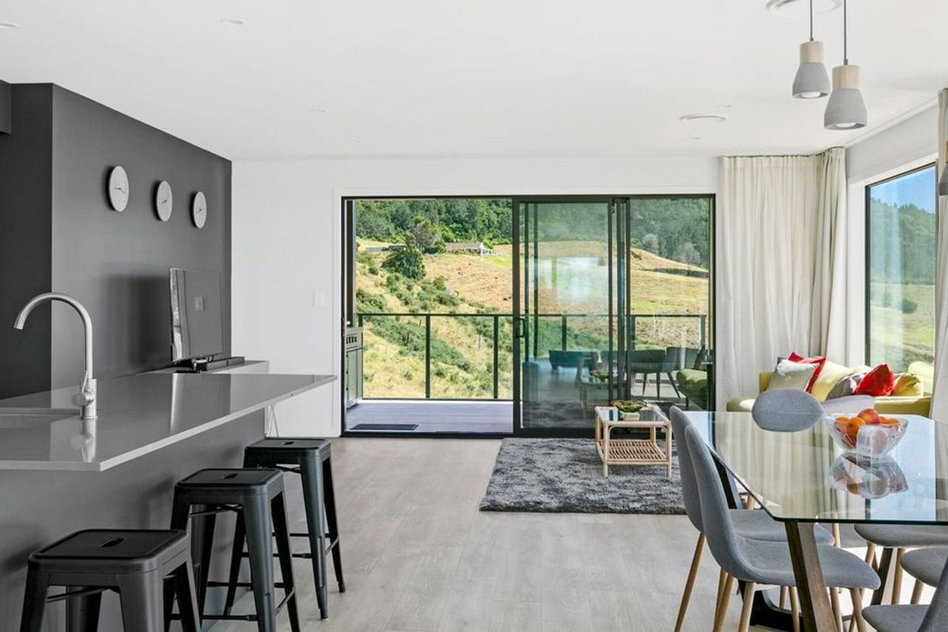 ArchiPro Project Summary - The East Coast Custom project at Waihi Beach features modern architecture with clean lines and expansive glass facades.