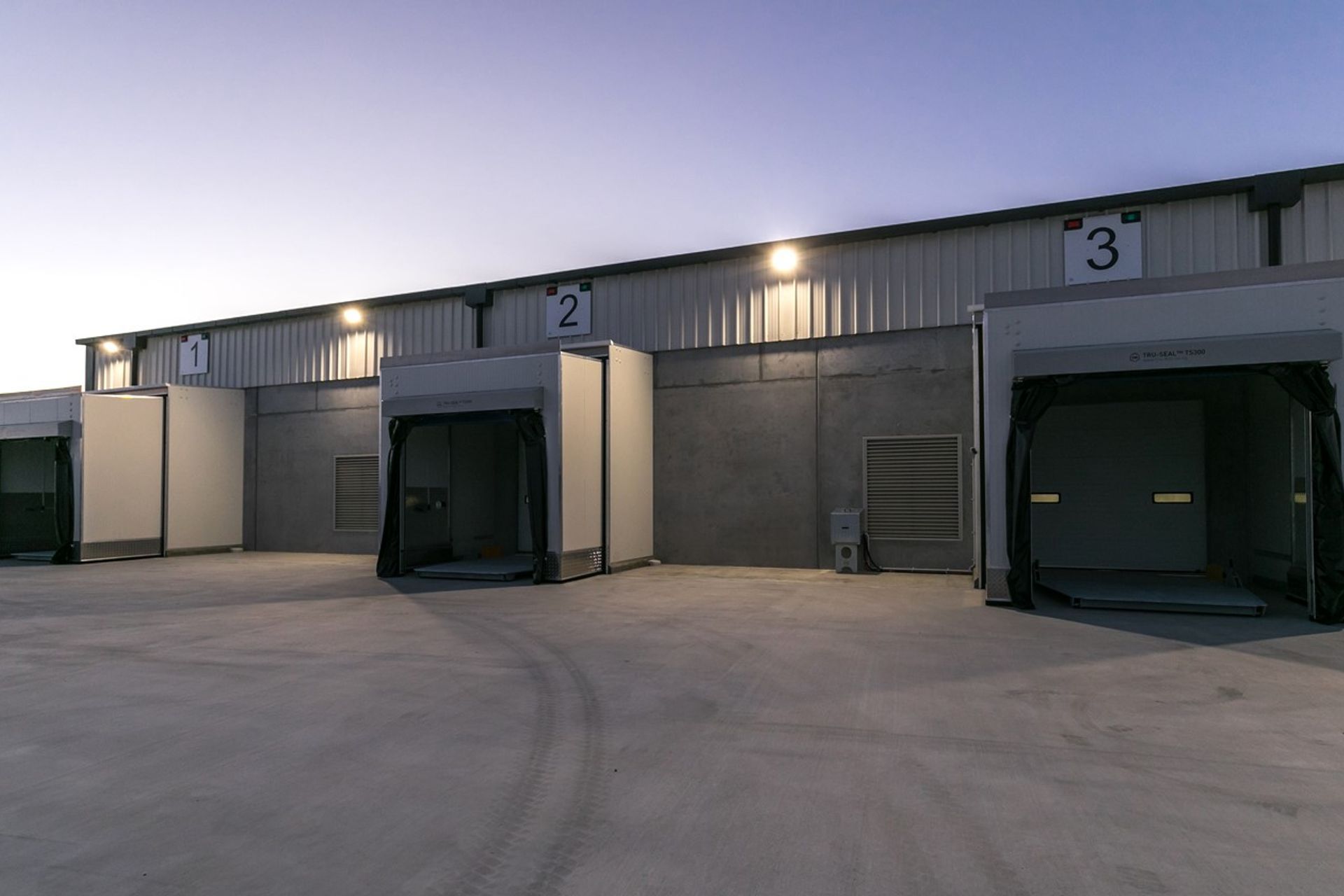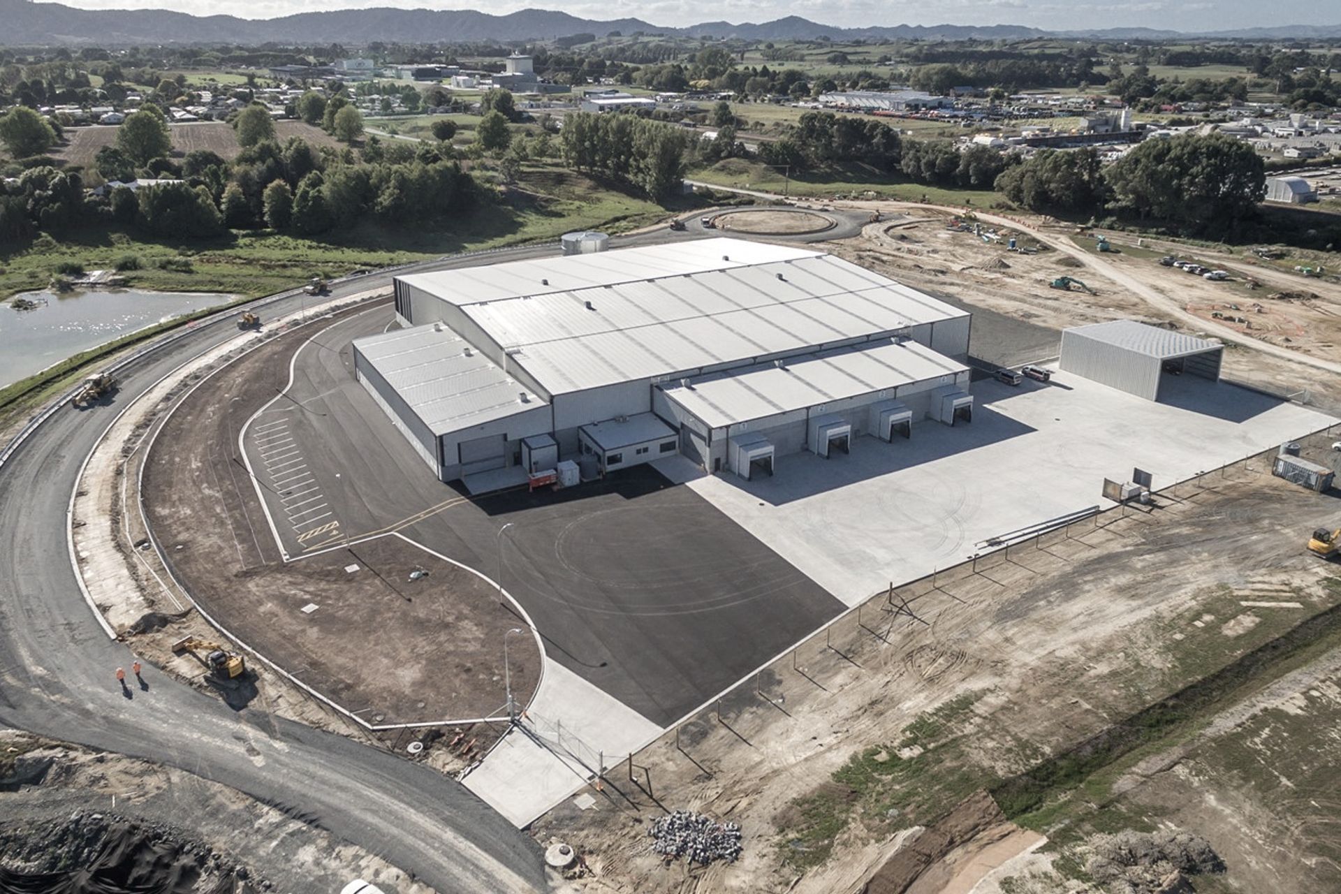 ArchiPro Project Summary - 7,500m² drystore design and build project for Ports of Auckland Ltd at the Waikato Freight Hub, featuring environmental loading areas, office amenities, automated container loading pods, and a dedicated pallet store, completed in 2019.