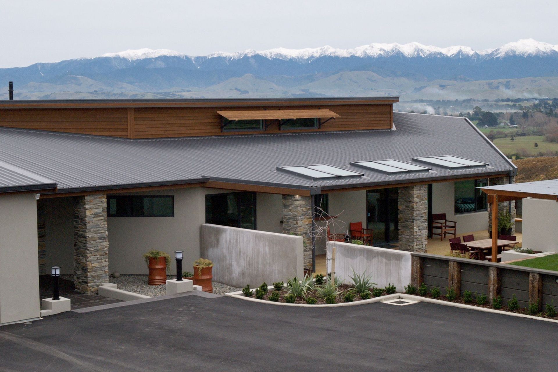 ArchiPro Project Summary - The Wairarapa House combines modern design with sustainable living, featuring open spaces and stunning views.