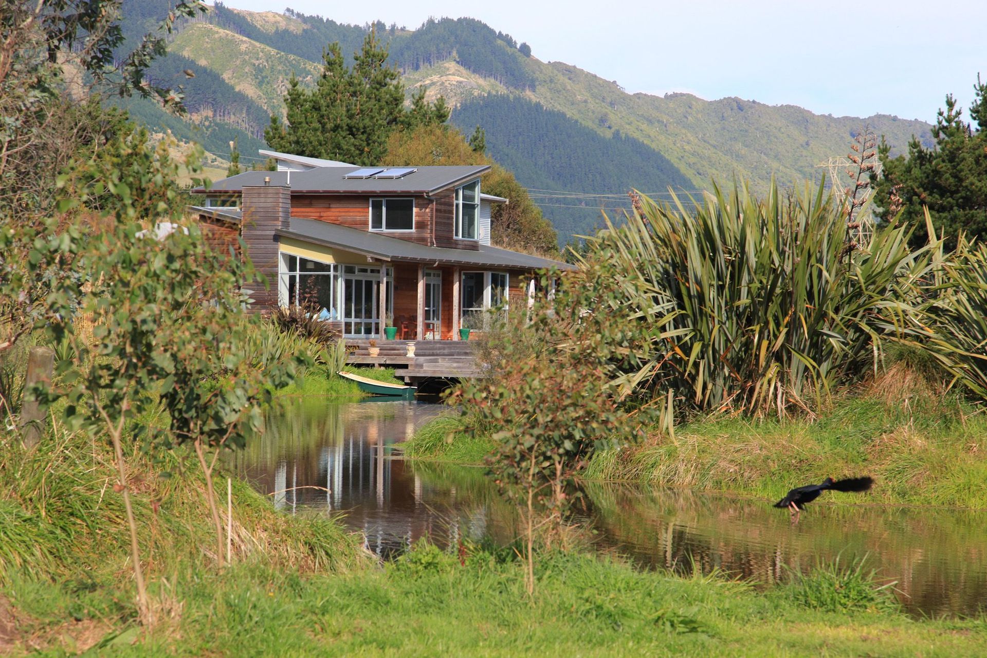 ArchiPro Project Summary - Eco-friendly home designed to restore natural wetland systems, featuring sustainable materials and energy-efficient systems, harmoniously situated on the Kapiti Coast.