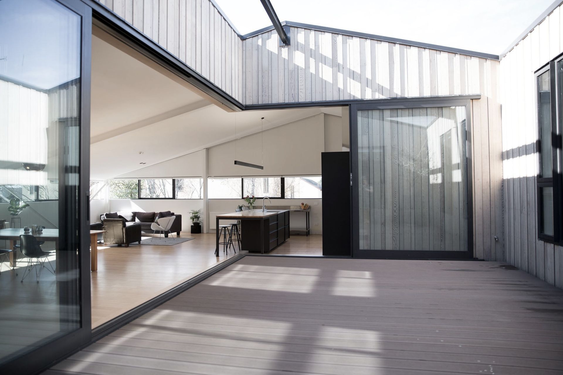 ArchiPro Project Summary - A sustainable urban lifestyle achieved through the conversion of a former NZ Post warehouse into a unique live/work space for a family of architects, featuring a blend of industrial materials and refined design elements.