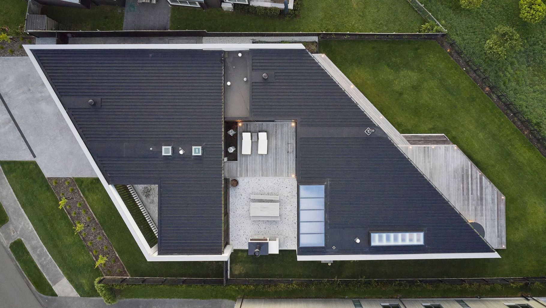 ArchiPro Project Summary - A unique wedge-shaped residence on Lisland Drive, designed for family gatherings, featuring durable materials and a striking aesthetic, completed in 2022.
