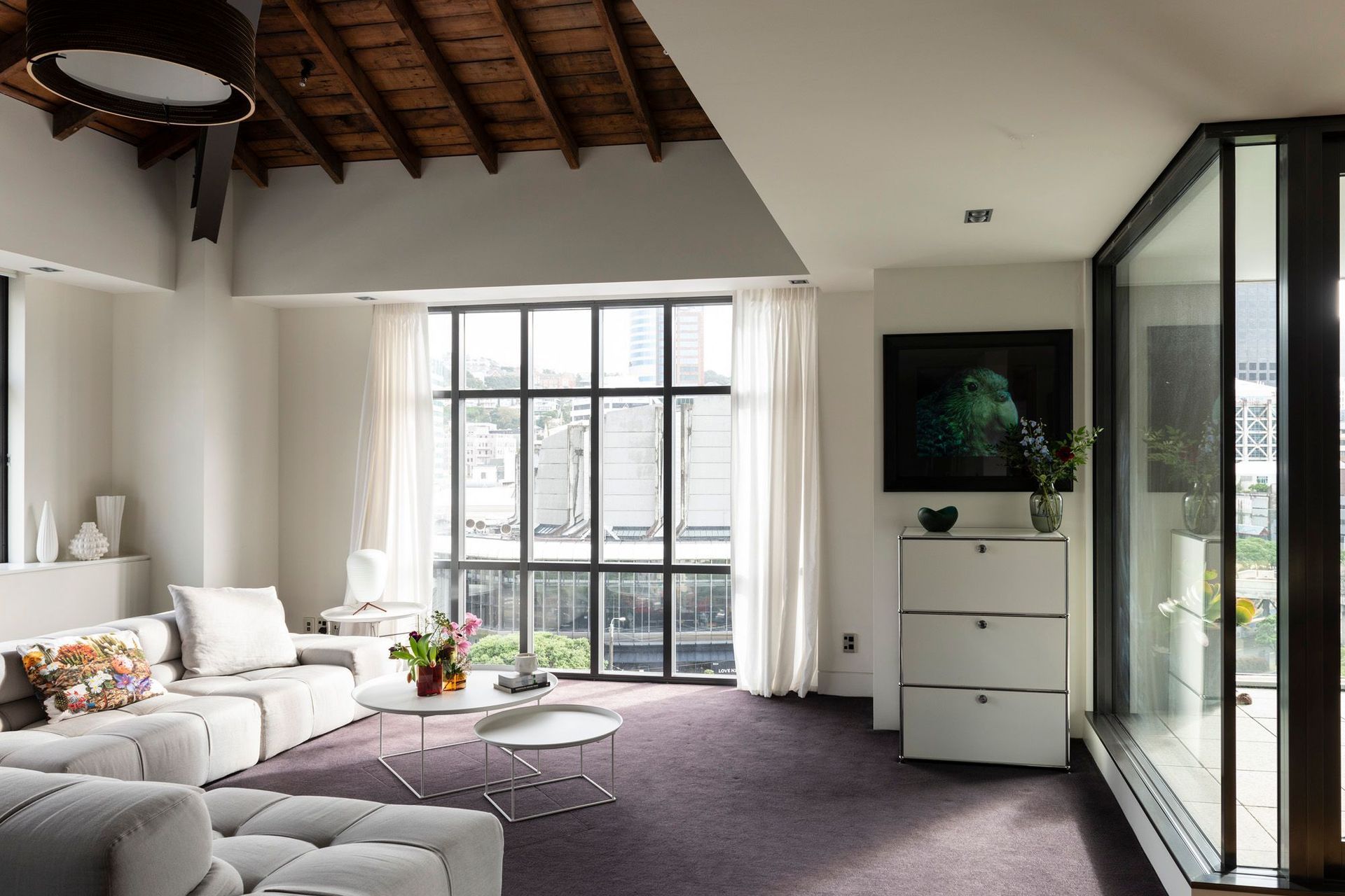 ArchiPro Project Summary - Thoughtfully designed transitional apartment by Athfield Architects, featuring flexible furniture and lighting solutions to accommodate the evolving needs of a family while their new home is under construction.