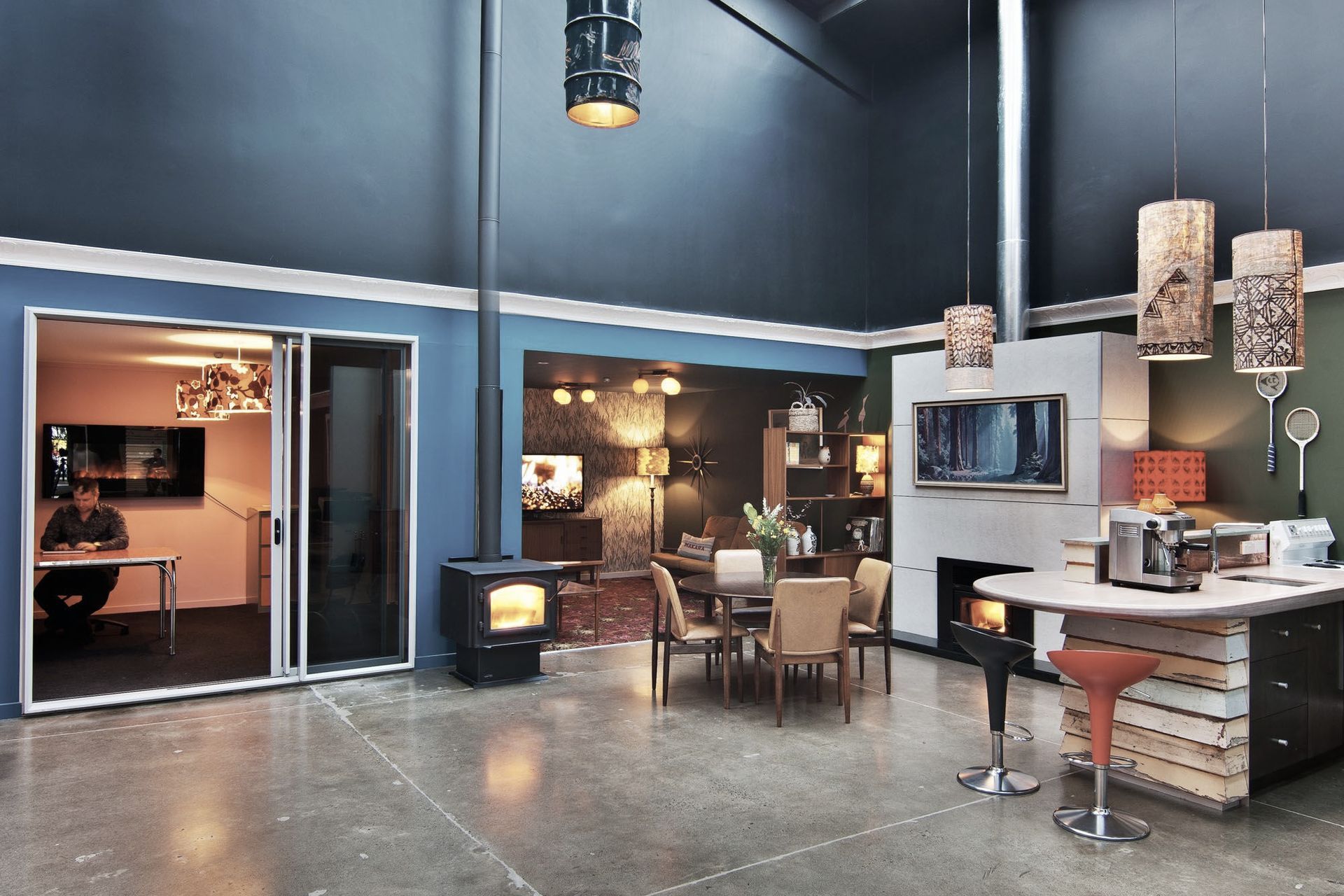 ArchiPro Project Summary - Award-winning showroom transformation by SpiceBuild and architect John Mills, featuring innovative materials and techniques to create an inviting retail space for fireplace shopping.