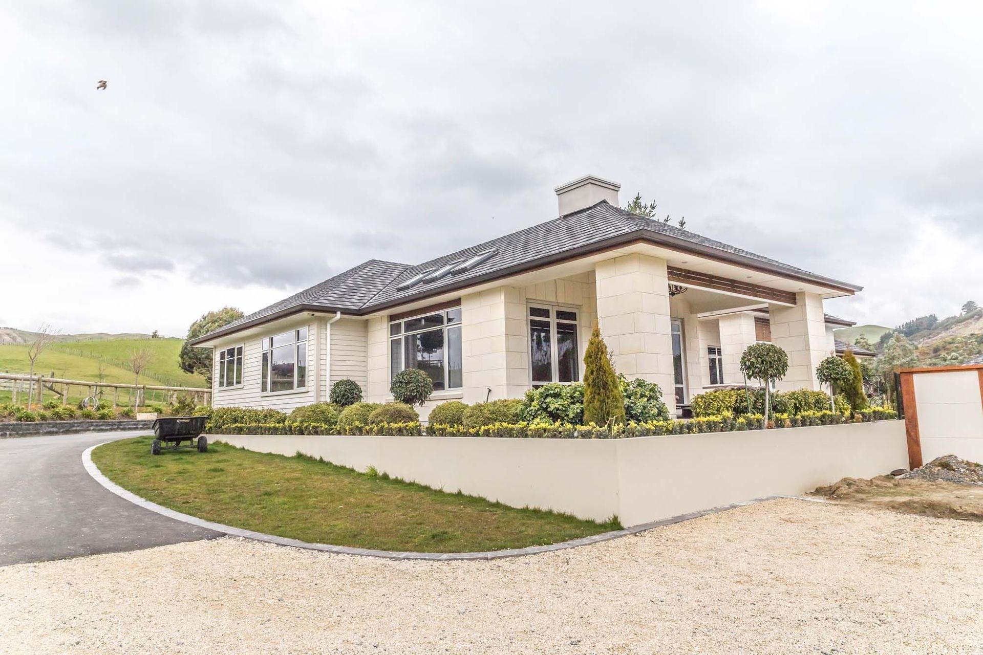 ArchiPro Project Summary - A stunning residence featuring Oamaru Stone cladding, expertly crafted by Progressive Homes Ltd, showcasing a blend of durability and style in the heart of the Wellington region.