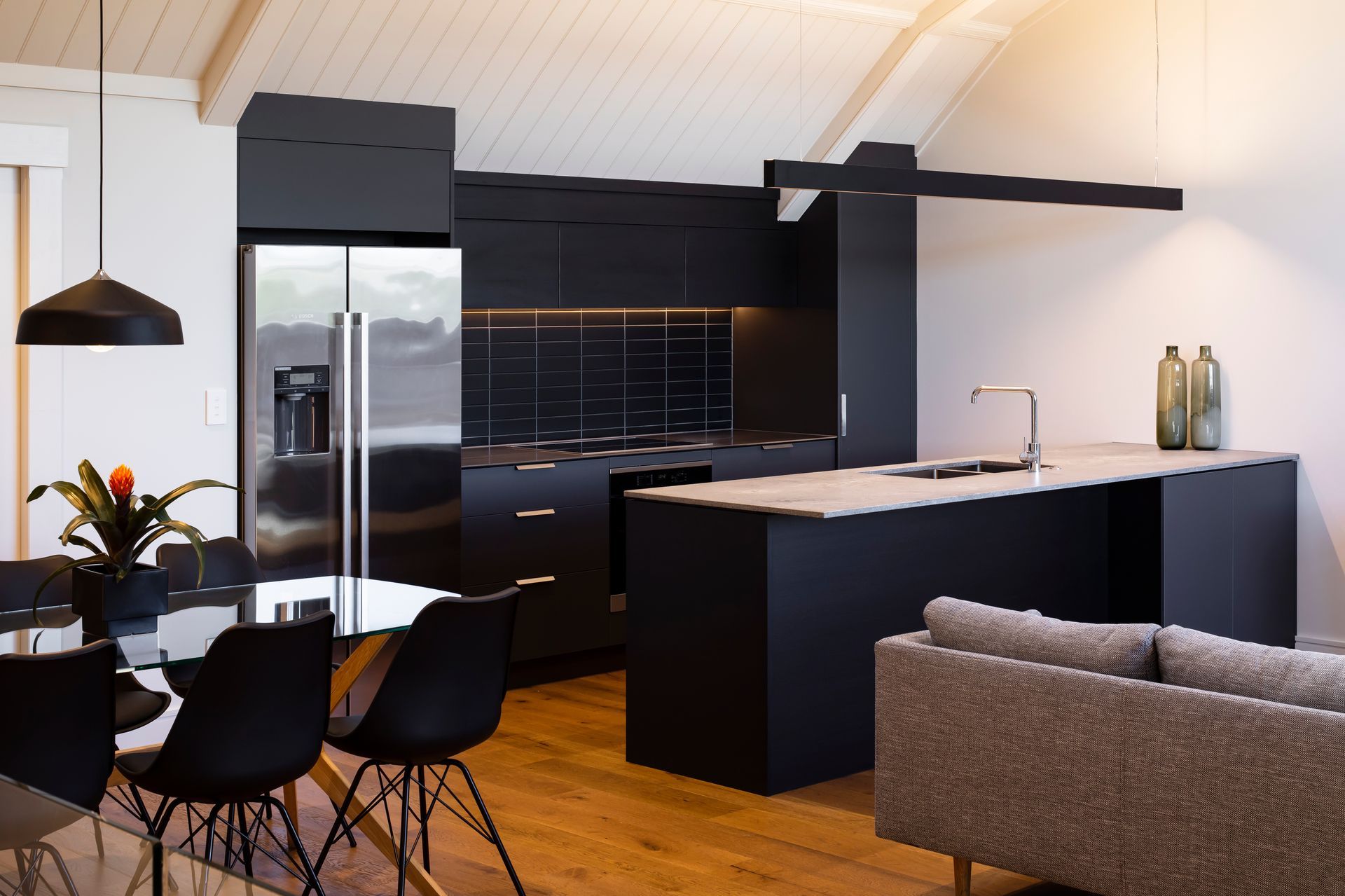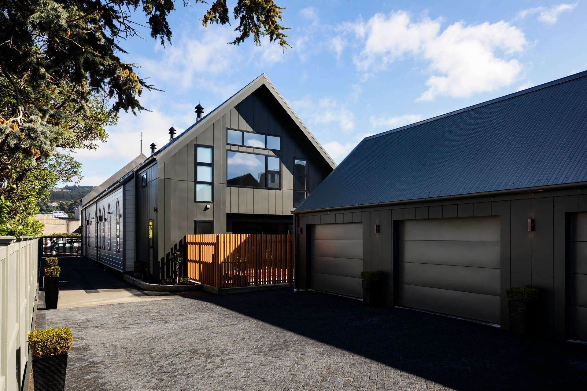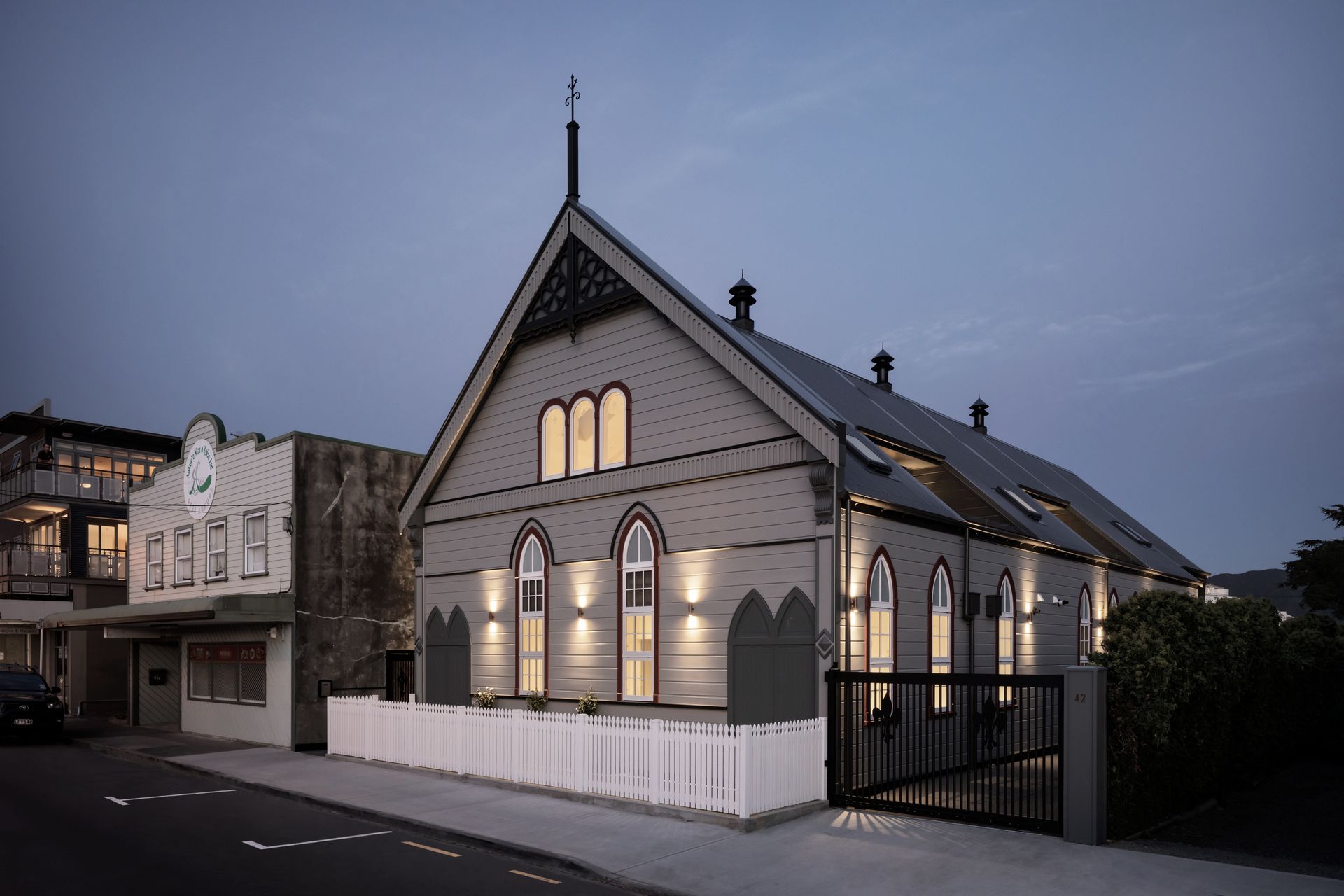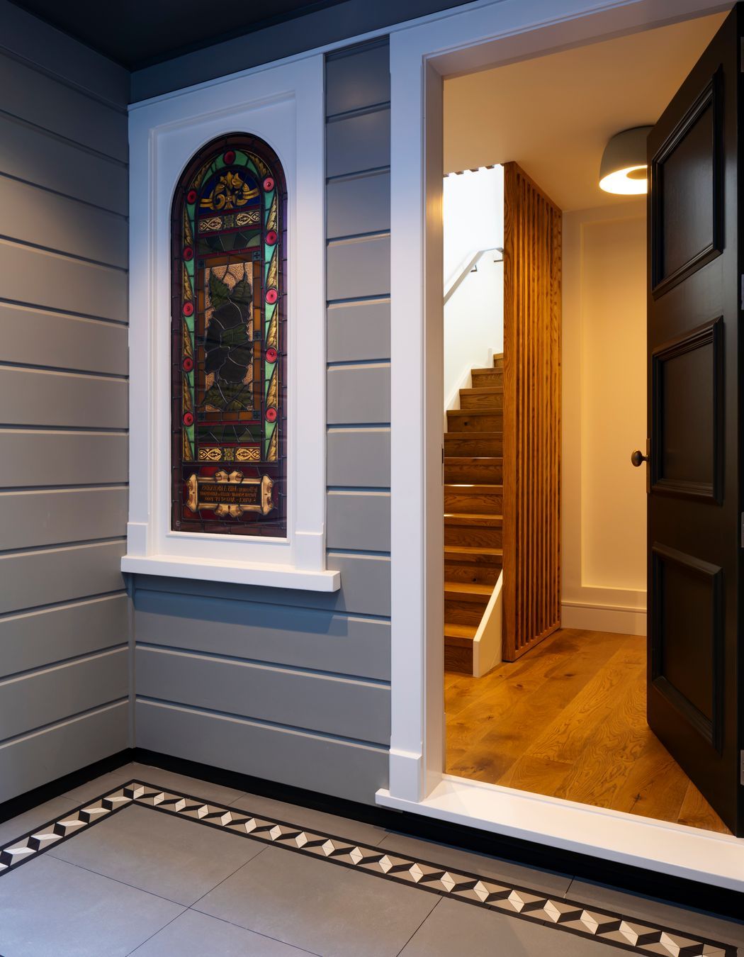 ArchiPro Project Summary - Conversion of the historic Wesley Church in Petone into elegant residences, featuring a harmonious blend of preserved architectural details and modern interiors, including bespoke kitchen and bathroom designs inspired by the church's stunning stained glass.