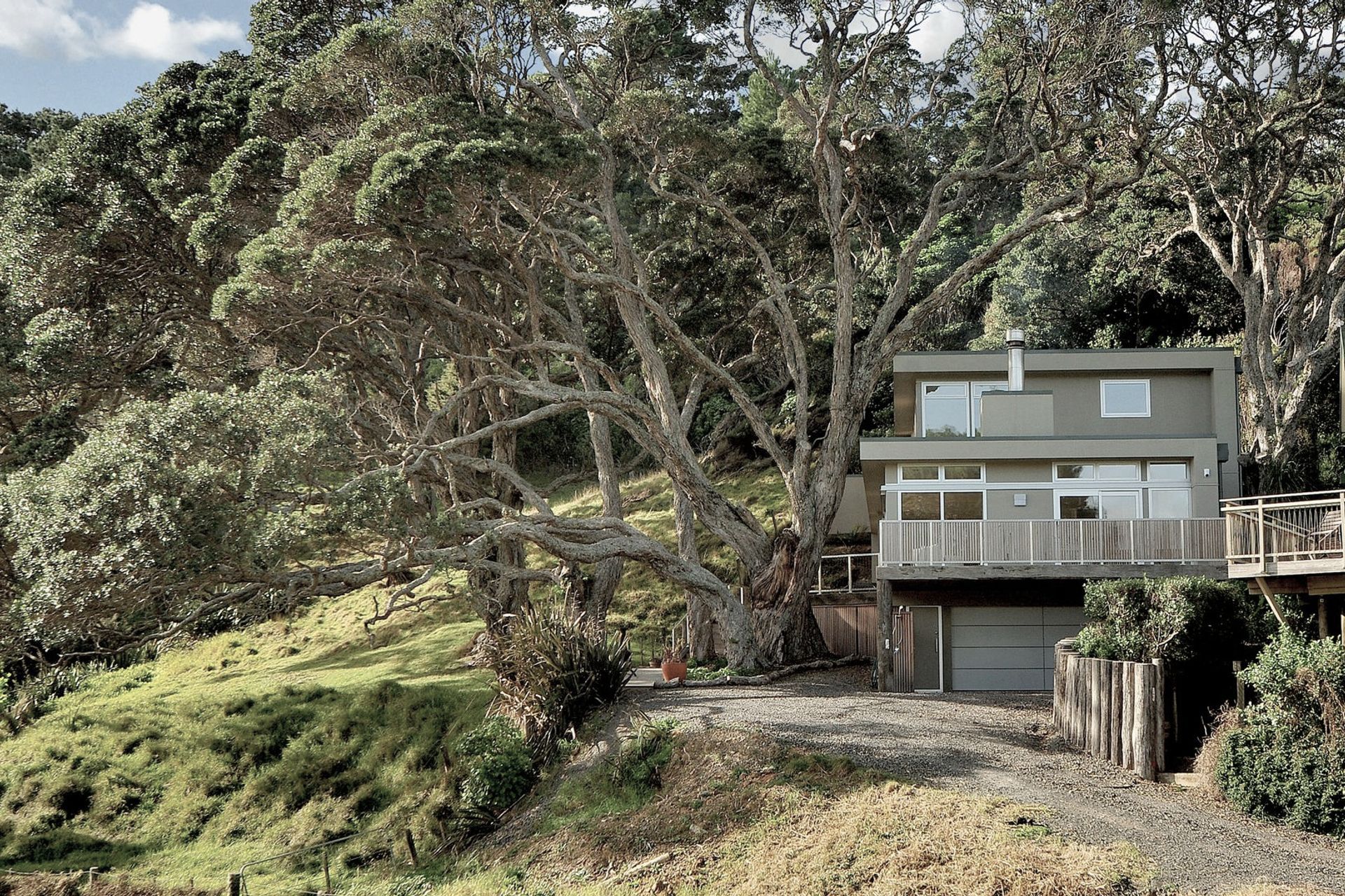 ArchiPro Project Summary - A unique beach house nestled among Pohutukawa trees, featuring recycled materials and an evolving design that offers stunning views and seamless indoor-outdoor living.