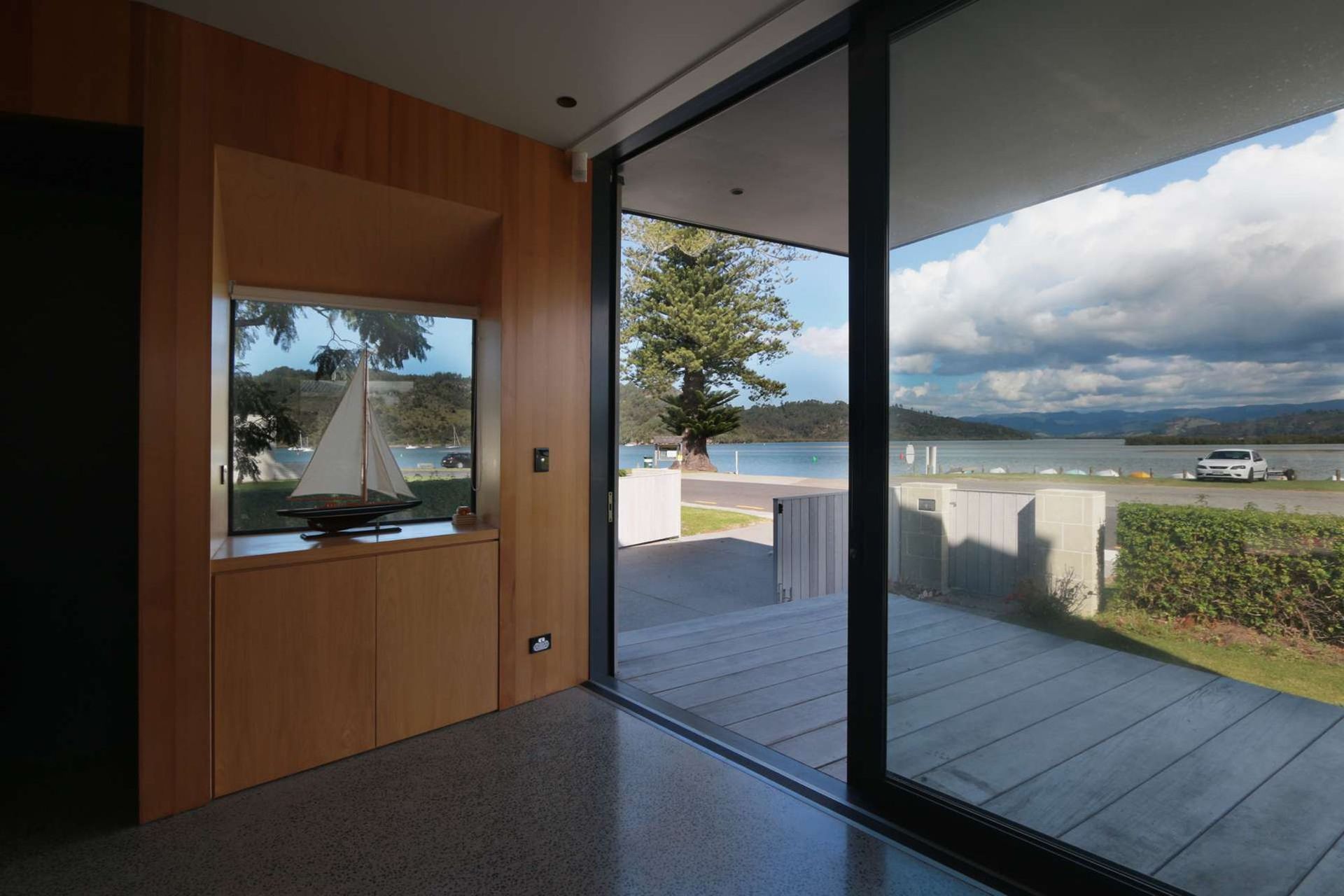 ArchiPro Project Summary - A harmonious blend of form and function, the White Lagoon House features striking monopitch designs, durable local stone exteriors, and warm timber interiors, seamlessly integrating with its coastal surroundings and offering year-round outdoor living spaces.