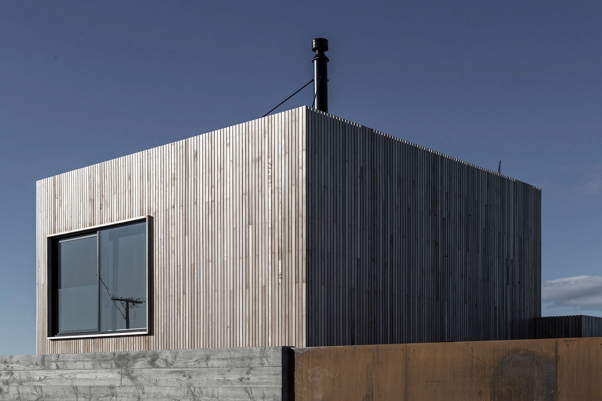 ArchiPro Project Summary - Whittaker House: A compact, two-level residence in Kakanui, designed to maximize sea views and sunlight while ensuring privacy, featuring three bedrooms and a modern interior with American Oak, all wrapped in a durable cedar-clad exterior.