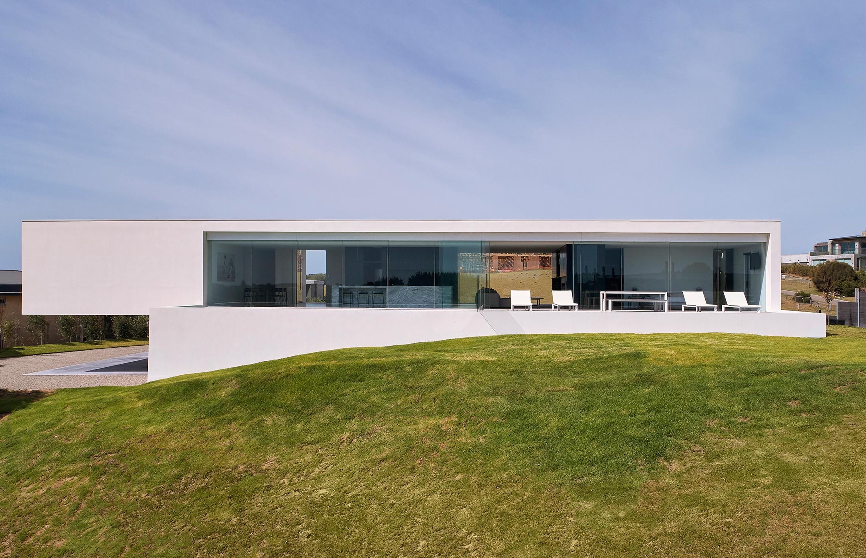 ArchiPro Project Summary - A meticulously designed family residence that appears to float on a crest, featuring a unique land typology with a cantilevered structure that gently cascades.