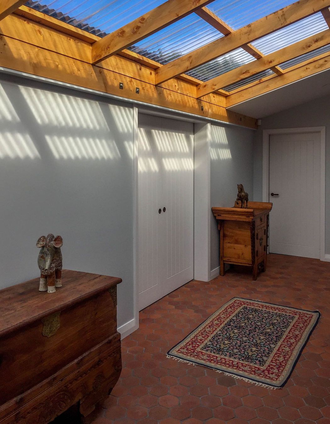 ArchiPro Project Summary - A transformative renovation of Windmill Cottage, enhancing light and warmth while harmonizing with the lush pastoral landscape near Matakana, featuring natural timber and terracotta finishes that complement the clients' eclectic art and furniture collections.
