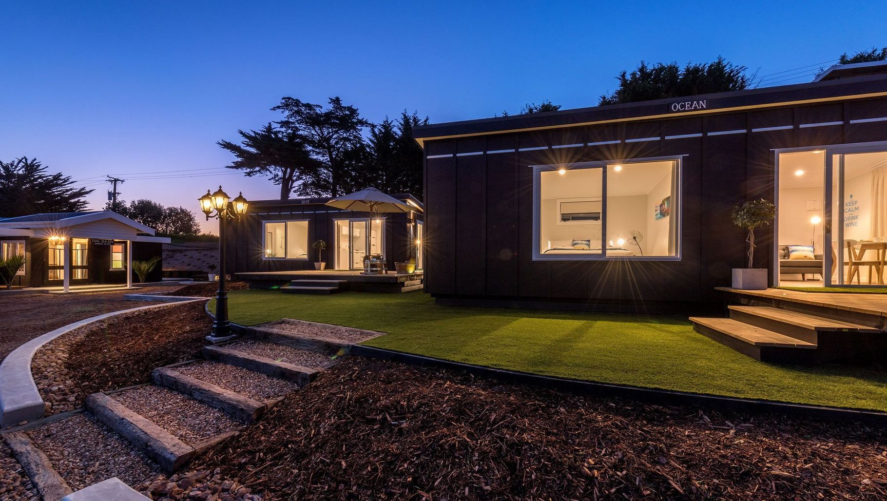 ArchiPro Project Summary - The Woodside Bay Chalet is a luxurious retreat that blends modern design with traditional aesthetics, set in beautifully landscaped gardens.