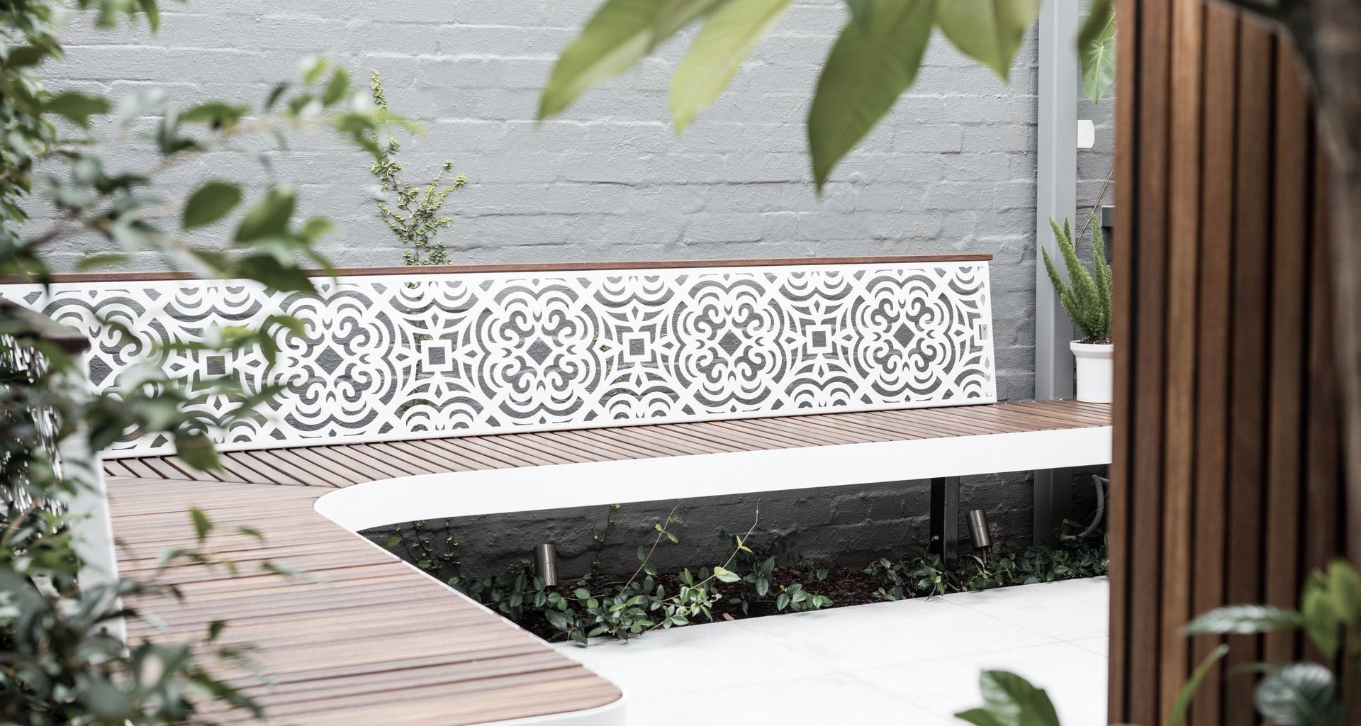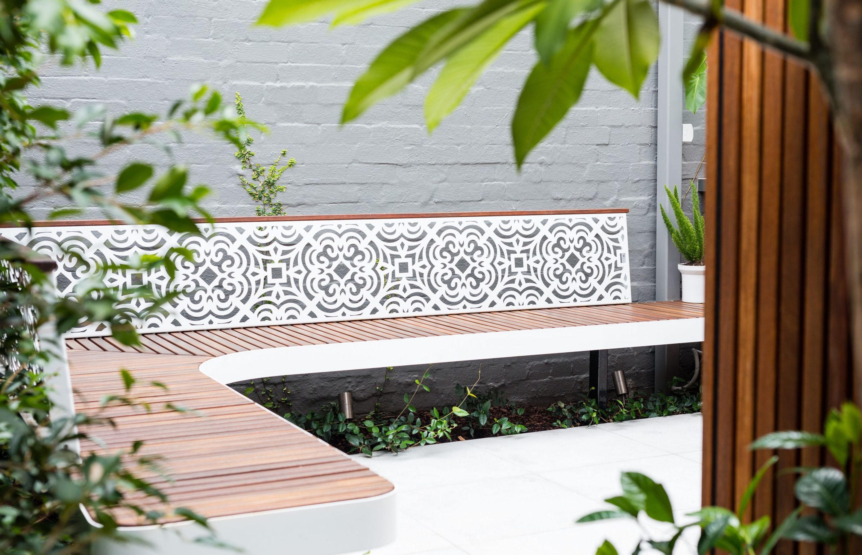 ArchiPro Project Summary - Innovative courtyard design in Woollahra featuring custom bench seating and practical storage solutions, harmonizing modern aesthetics with the charm of Victorian terrace architecture.