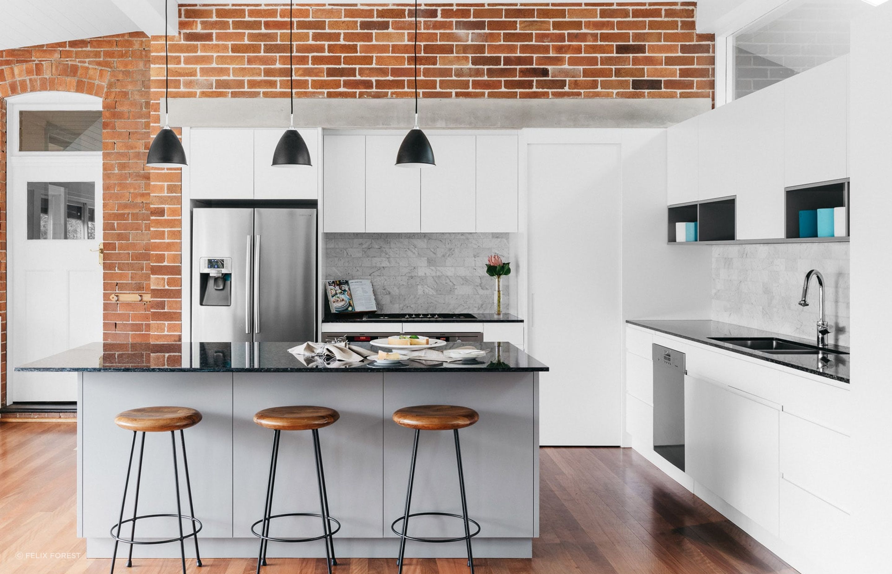 ArchiPro Project Summary - A contemporary renovation of a Federation family home, completed in 2017, transforming the living area into a multifunctional space that harmoniously blends traditional and modern elements, featuring a light-filled home office and a striking kitchen design.