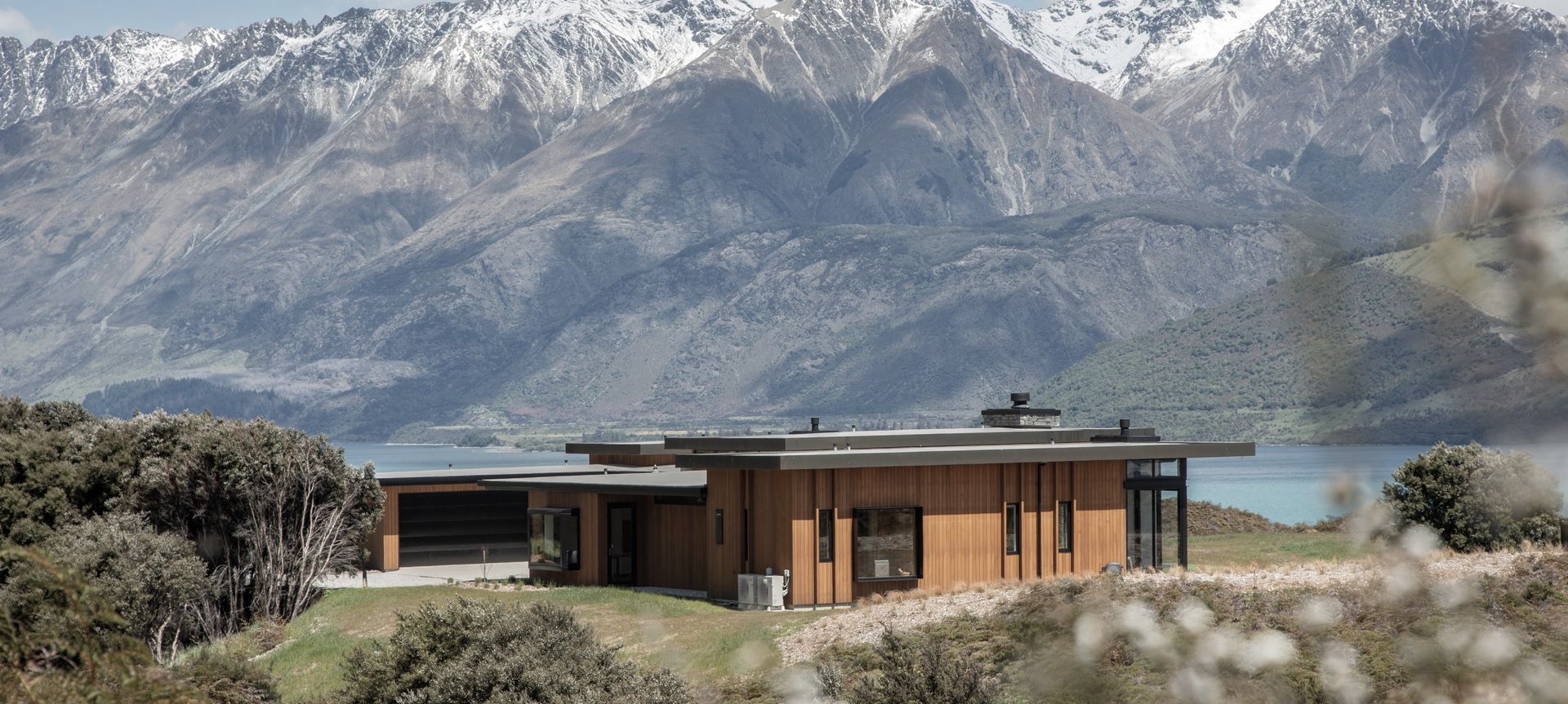 ArchiPro Project Summary - A unique architectural vision inspired by Richard Neutra, blending rustic Central Otago materials with Oriental pavilion designs, ensuring seamless integration with the surrounding landscape through durable, low-maintenance materials.