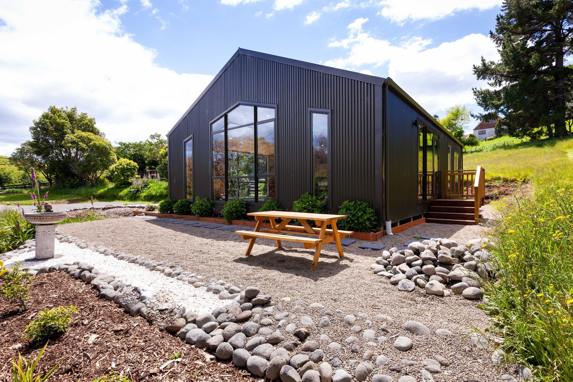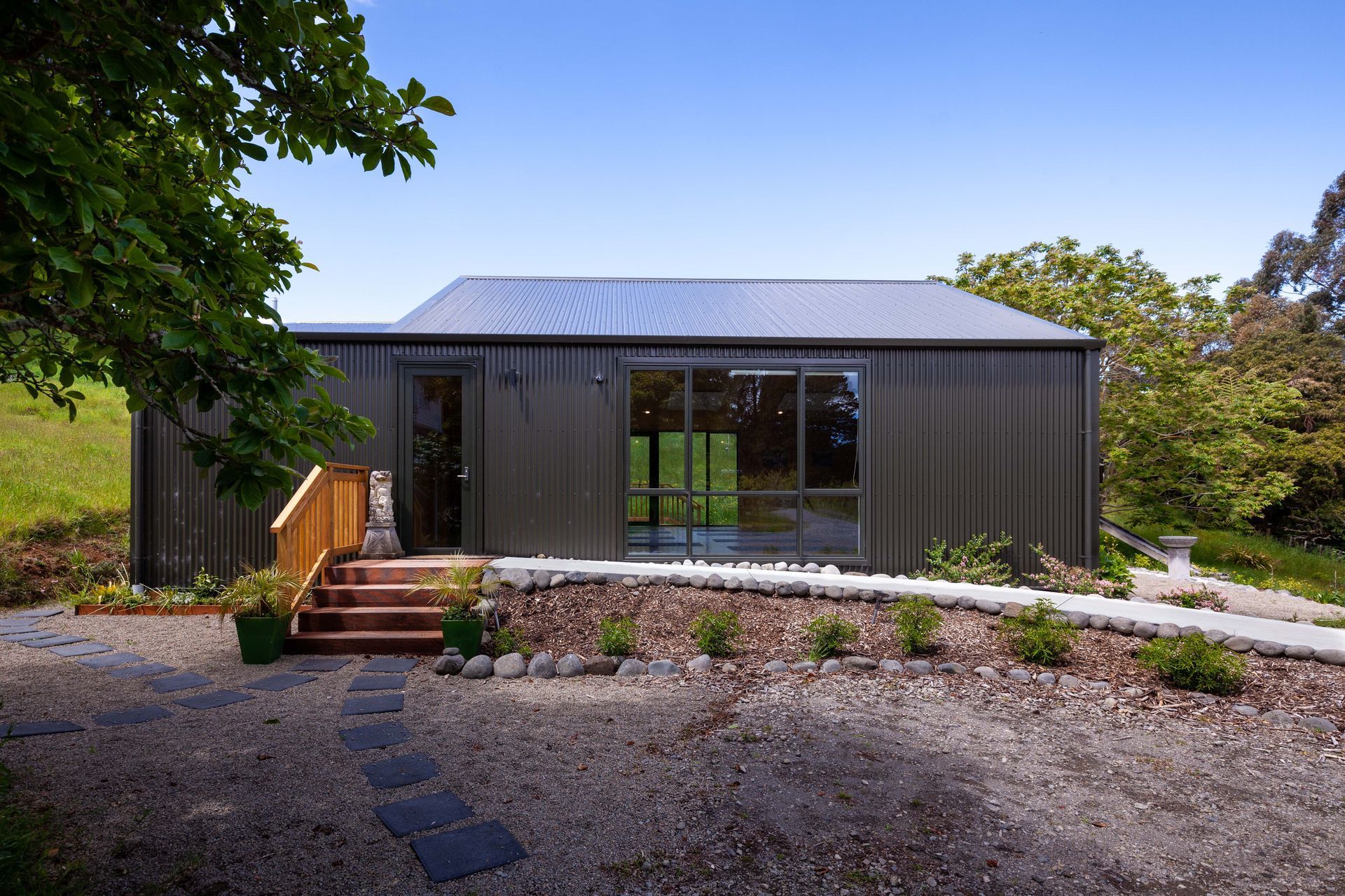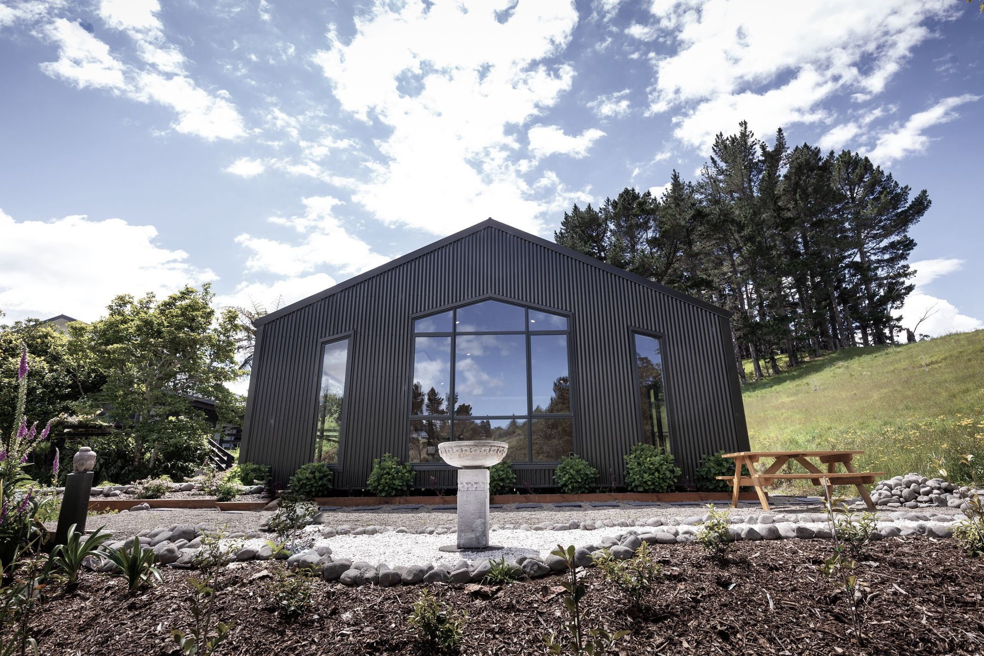 ArchiPro Project Summary - Tranquil Yoga Studio in New Plymouth featuring open spaces, stunning views of Mount Taranaki, and comfortable accommodation, designed for health and wellness with durable materials and an impressive glass gable roof.